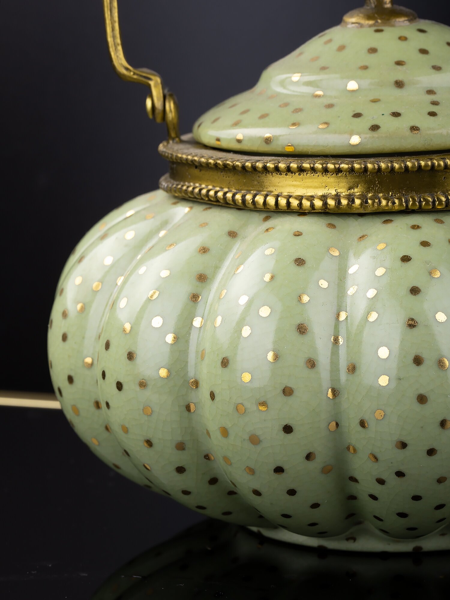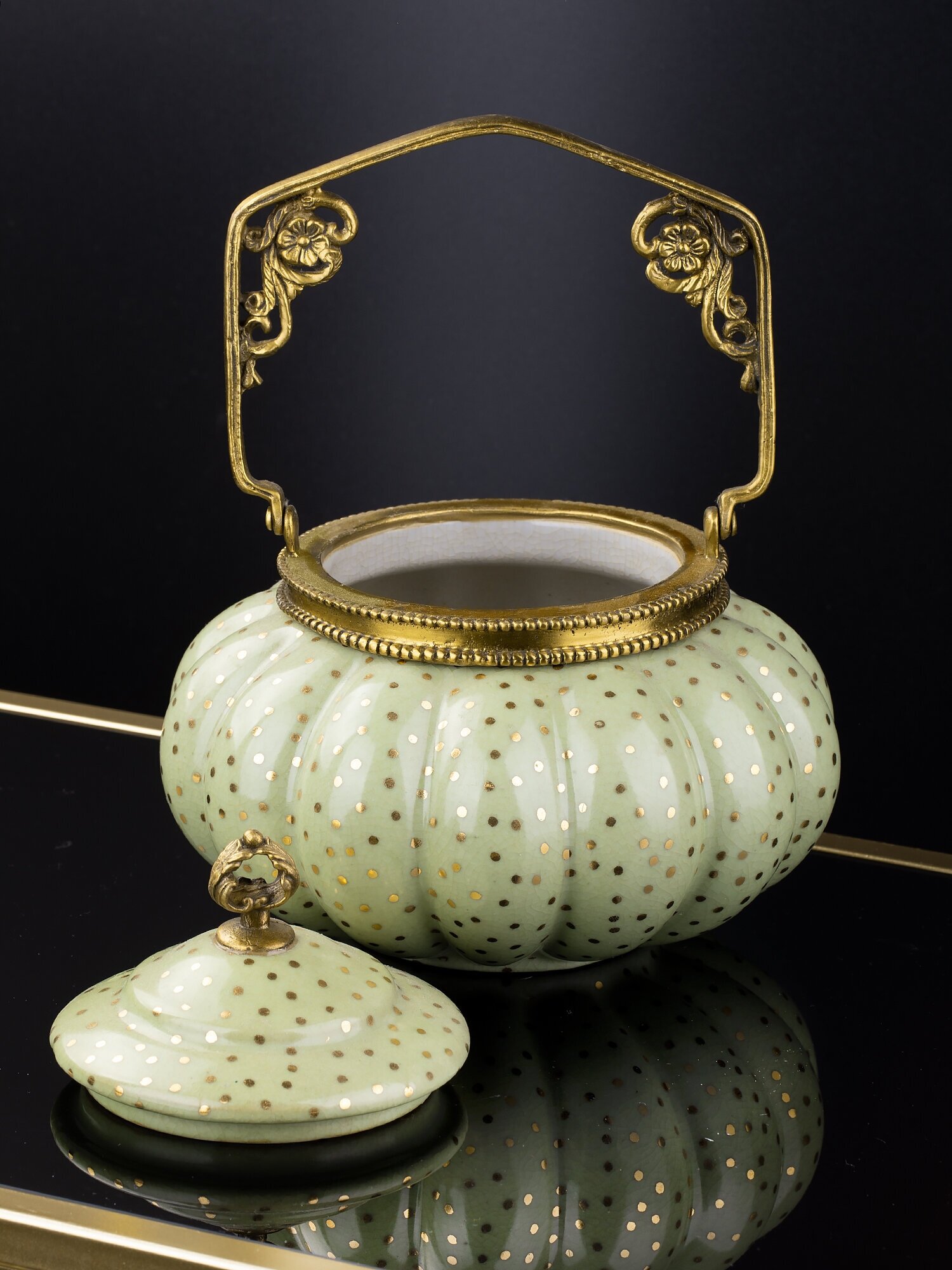 Уникальное изделие ручной работы. При производстве этих художественных изделий из фарфора с бронзой используются вековые традиции китайских мастеров. Видимые трещинки (кракелюры) делаются по уникальной технологии, что придает более благородный вид старинного изделия.