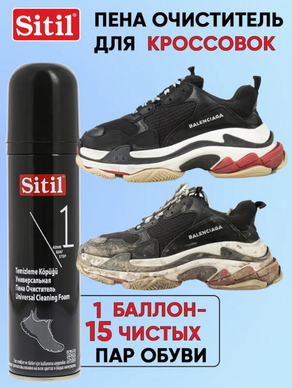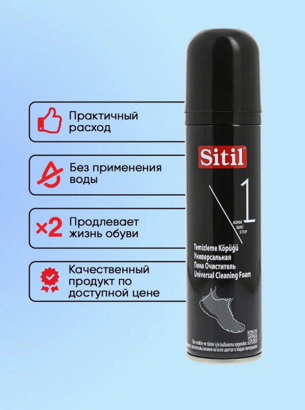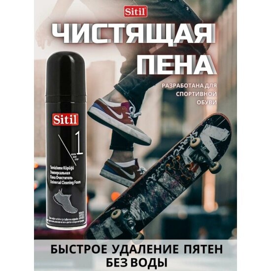 Сервис сравнения цен СкидкаГИД предлагает сравнить цены на товар «Пена-очиститель для обуви Sitil 150 мл Black edition Universal Cleaning Foam»