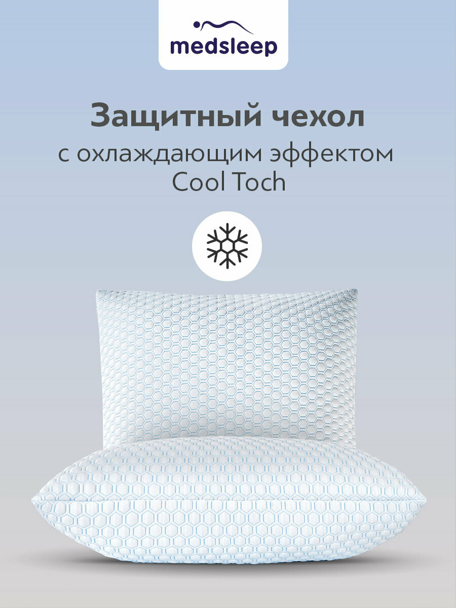 Ткань – эластичный и качественный трикотаж с охлаждающим эффектом CoolTouch, который не растягивается и отлично держит форму. Материал прекрасно пропускает воздух, тем самым не накапливая неприятный запах и не нагреваясь. Чехол на молнии имеет вышитые рельефные подушечки с легким массажным эффектом Защищает подушки от всех видов загрязнений: жидкости, пота, пыли и грязи.