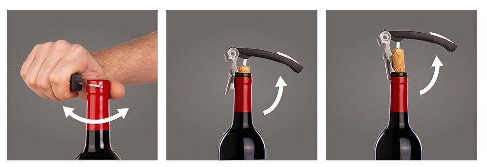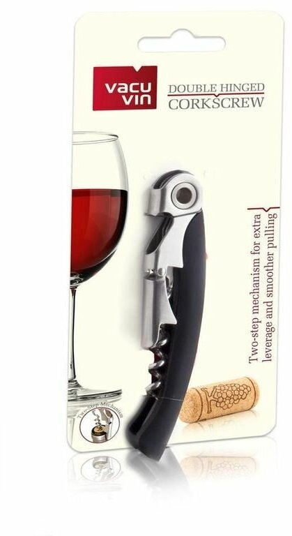 Универсальный штопор официанта Vacu Vin с двухшарнирным механизмом - это функциональное устройство, благодаря которому извлечение пробки происходит быстро и легко. Он обладает компактным дизайном и мало весит.