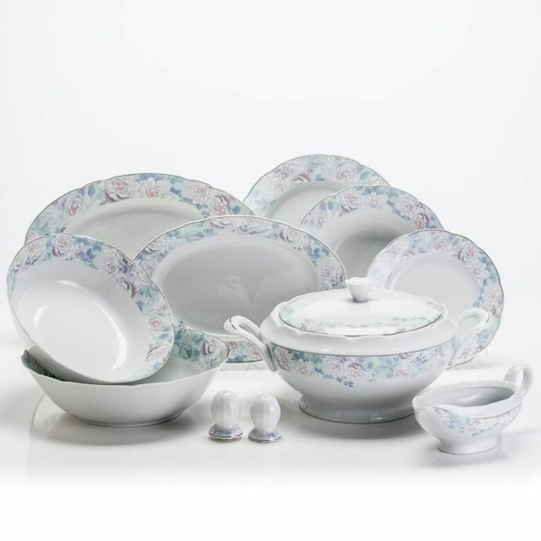 | Состав набора | блюдо - 2 шт.; масленка - 1 шт.; салатник - 1 шт.; прибор для специй - 1 шт.; салфетница - 1 шт.; тарелка - 18 шт.; супница - 1 шт. |