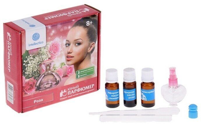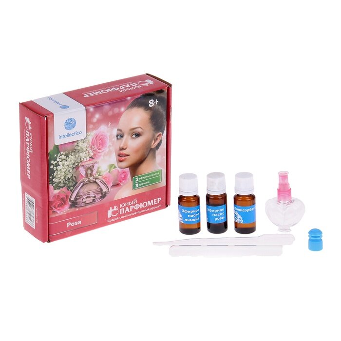 Intellectico Серия Юный парфюмер, Набор мини - комплект, который превратит обычную комнату в настоящую лабораторию. Почувствуй себя алхимиком, для которого не существует никаких рамок: смешивай разные запахи, улавливай оттенки и создавай свой неповторимый аромат, который перевернет всю индустрию парфюмерии! Используй в качестве основы тонкий аромат розы, которая в сочетании с бодрящим лимоном подарит свежесть, подчеркнет женственность и игривость натуры.