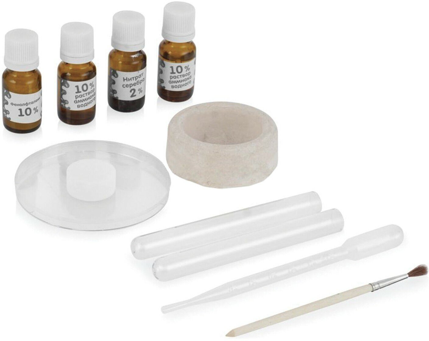 В наборе 3 опыта, с помощью которых ребенок узнает, как нужно наносить серебро на медь и для чего это нужно, как можно очистить медь от посторонних примесей. Набор поможет создать невидимые чернила, которые можно использовать, играя в детективные истории.