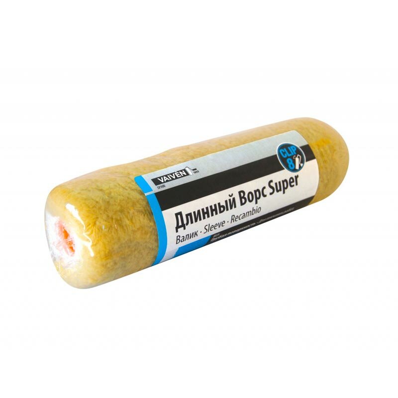 Шубка с длинным ворсом Super испанского бренда Vaiven для бюгельной системы предназначена для равномерного прокрашивания фасадов и других оснований с углублениями на поверхности. Выполнена из полиамида по технологии Termofusion, высота ворса – 19 мм. Ширина шубки – 220 мм, внутренний диаметр – стандартные 8 мм.