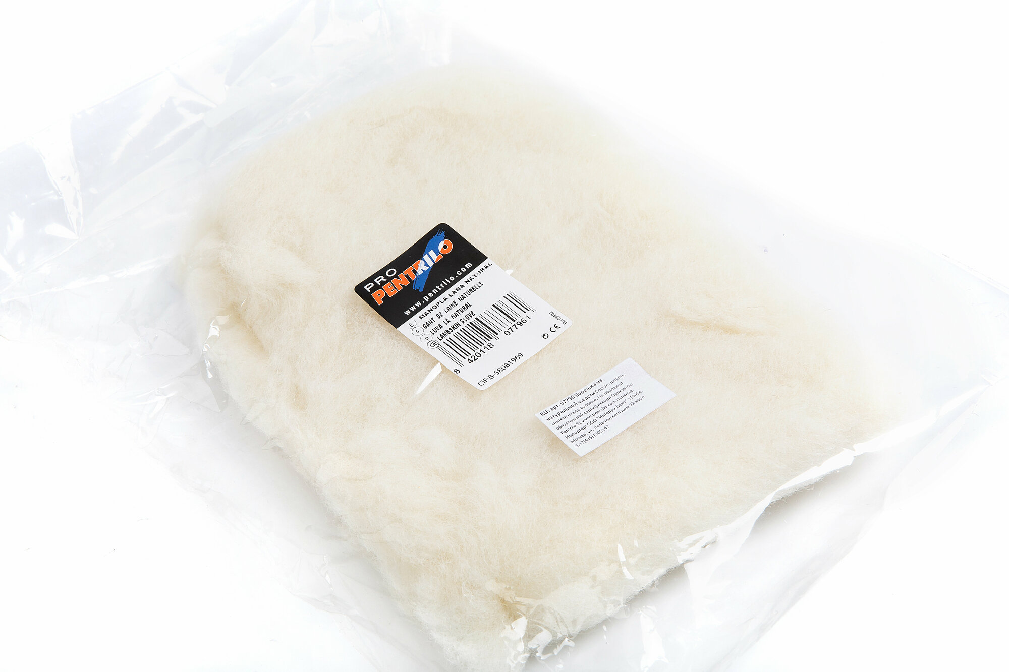 Белая варежка с черной манжетой испанского производителя Vaiven предназначена для нанесения воска на венецианскую штукатурку и шлифовки других декоративных поверхностей. Инструмент выполнен из натуральной шерсти. Манжета надежно фиксирует варежку на руке. Размер: 200х150 мм.