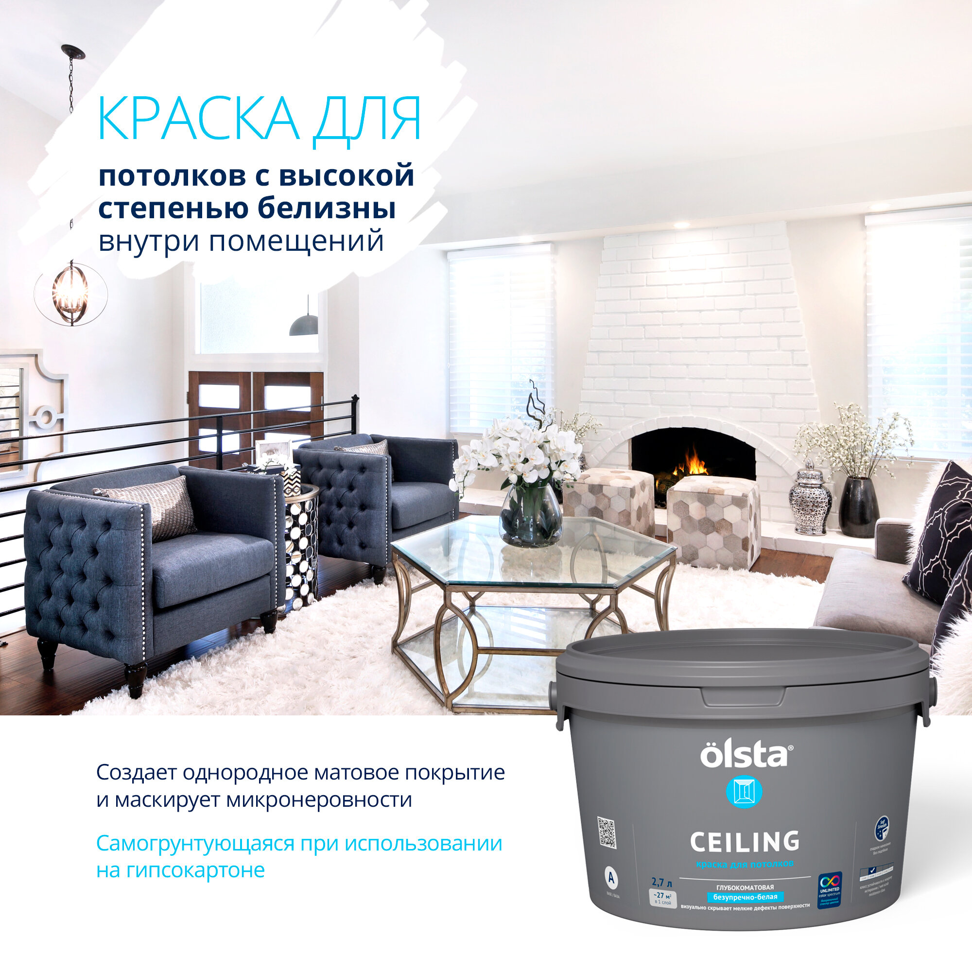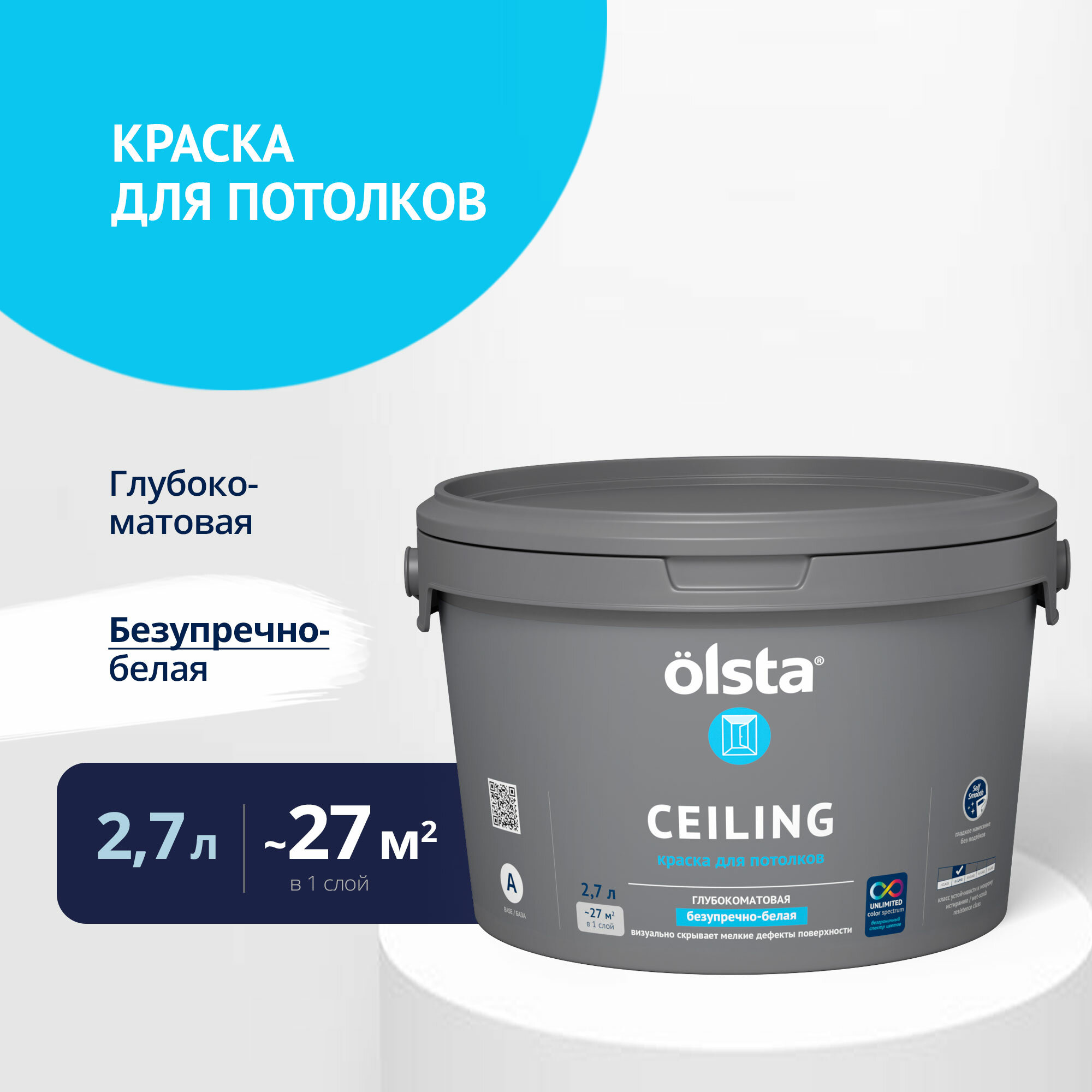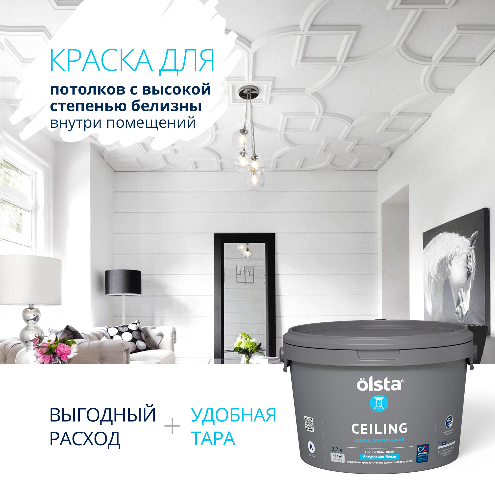 Краска акриловая Olsta Ceiling глубокоматовая белый 2.7 л 4.12 кг