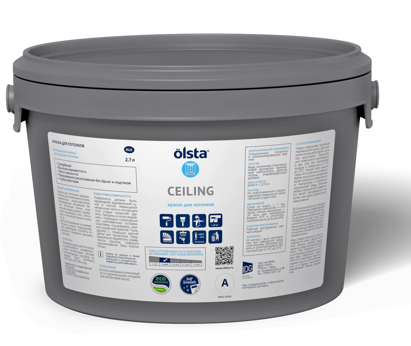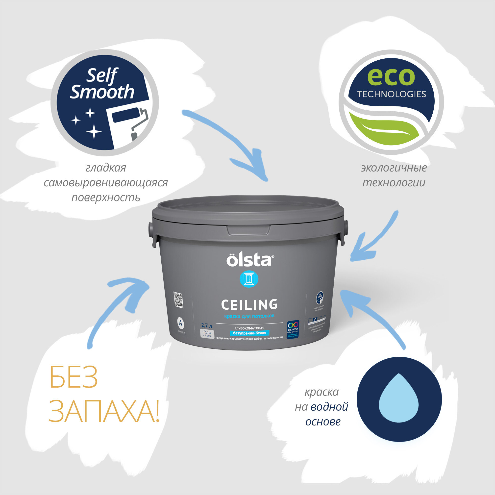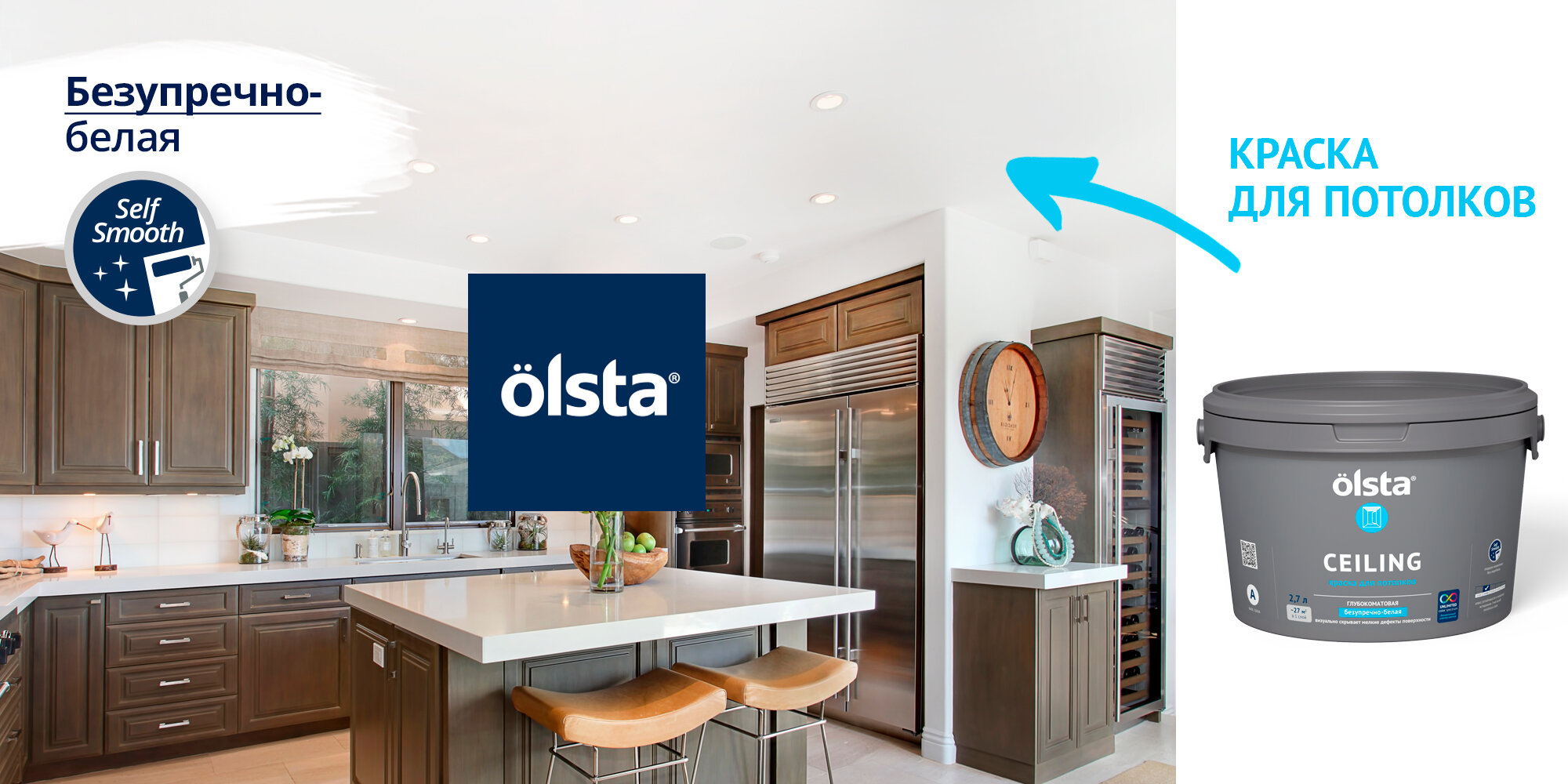 Краска акриловая Olsta Ceiling глубокоматовая белый 2.7 л 4.12 кг