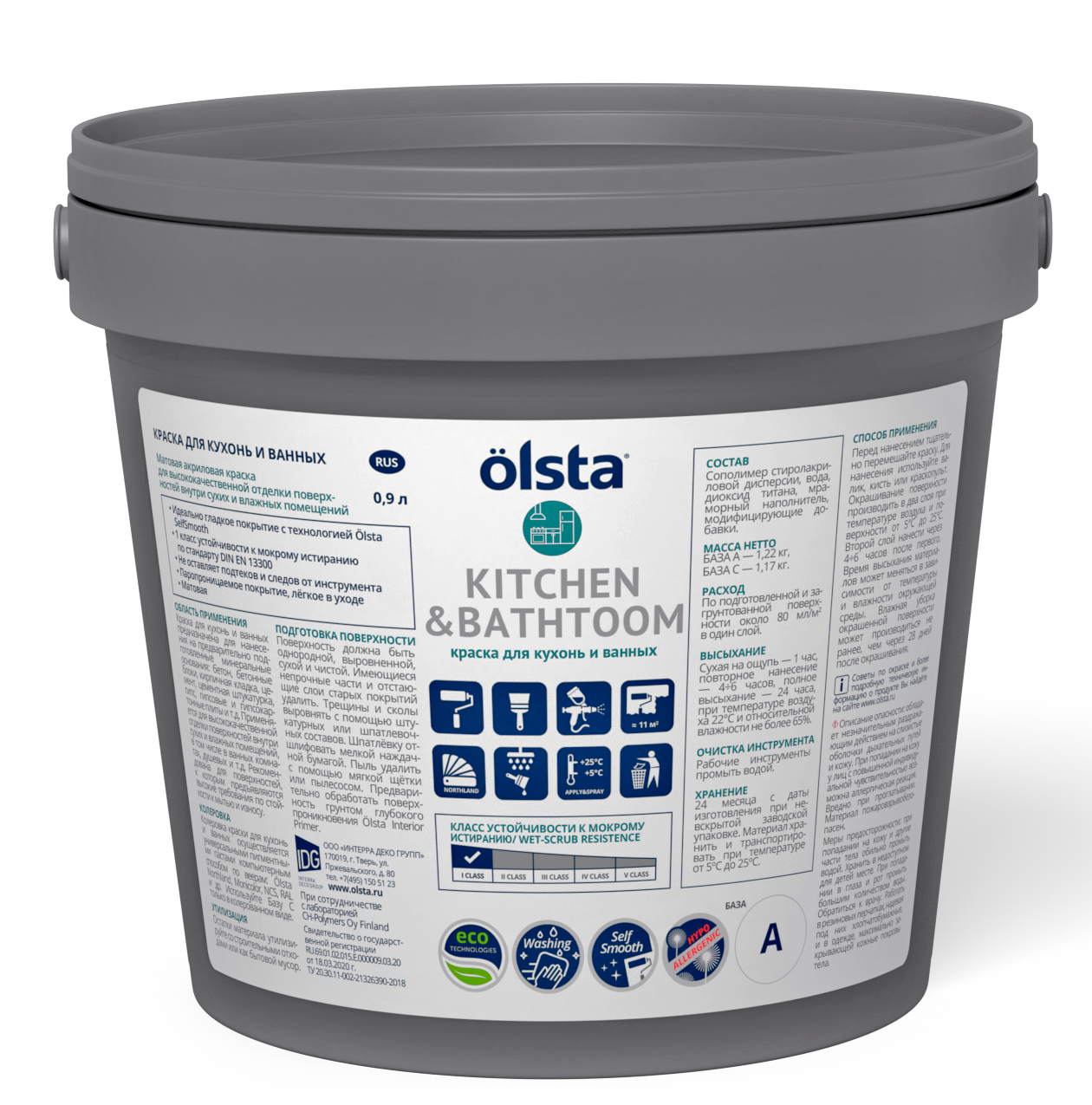 Краска Olsta Kitchen&Bathroom База А 9 л