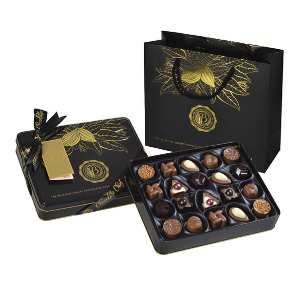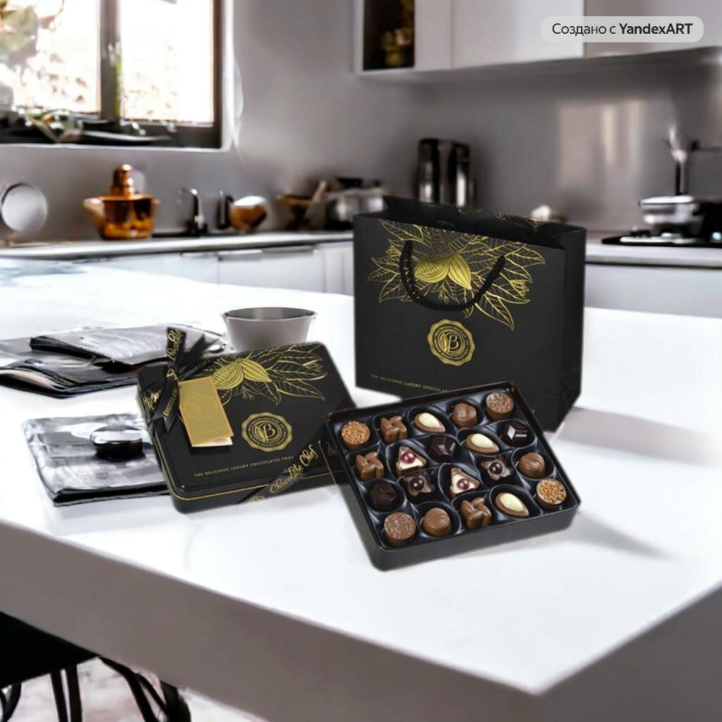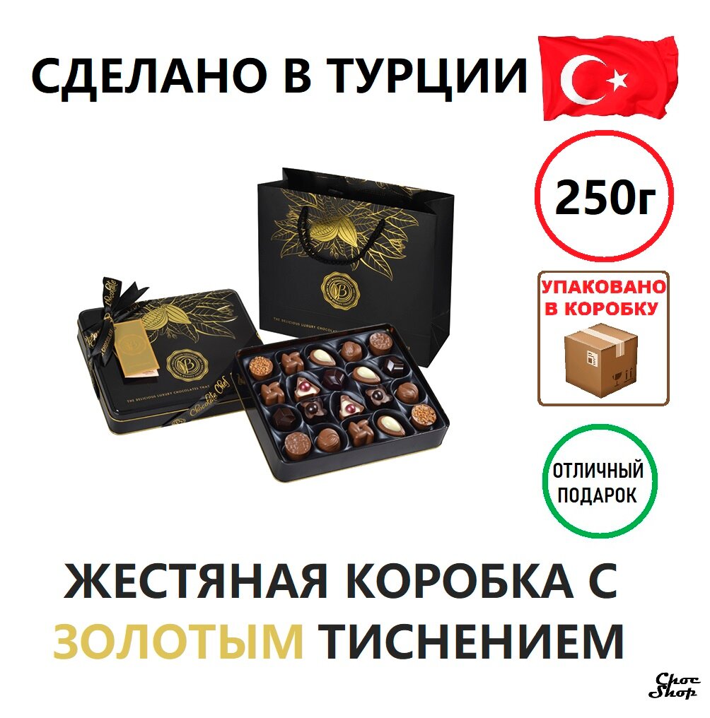 Премиальные шоколадные конфеты BOLCi ассорти "Black& Gold" в подарочной металлической упаковке с бантом нетто 250 г Chief