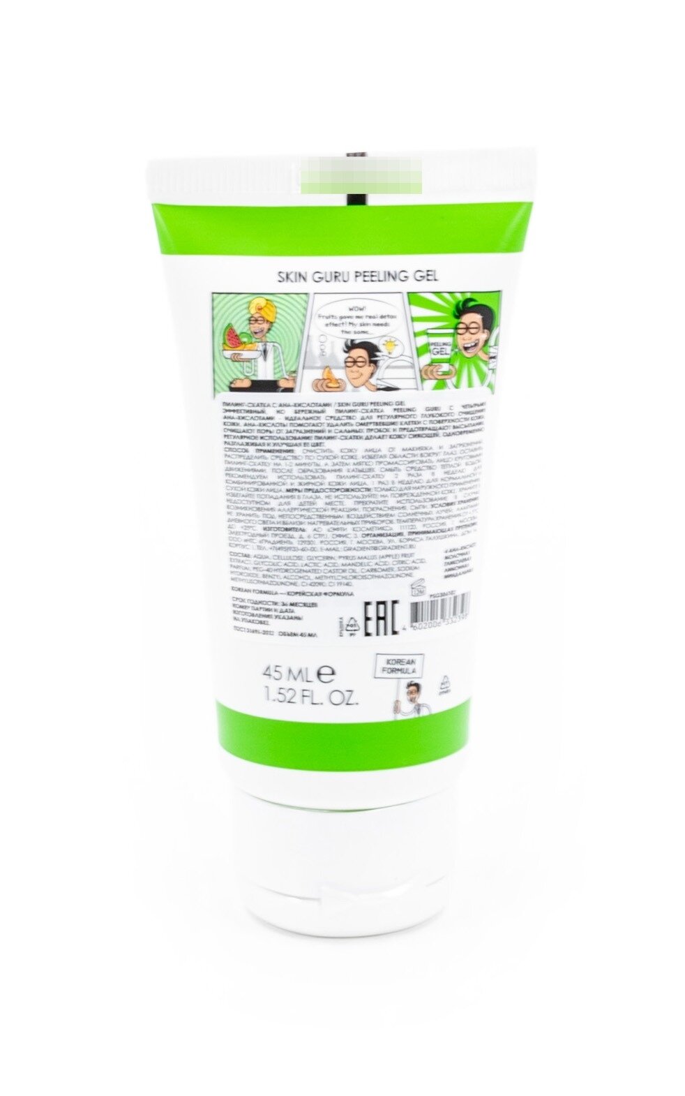 ПРЕДЫСТОРИЯ: Во время путешествия по Индии Профессор, сам того не замечая, только и ел вкусные и спелые фрукты. Удивившись, какой детокс-эффект этот рацион оказал на его организм, он вдохновился и создал средство, которое также избавит кожу от токсинов и загрязнений. Вернувшись из Индии, Профессор придумал пилинг-скатку аж с четырьмя видами фруктовых кислот! Он помогает нежно отшелушить ороговевшие частички кожи, выровнять ее тон, нормализовать работу сальных желез и ускорить процесс обновления клеток. ПРОДУКТ: Пилинг-скатка "SKIN GURU PEELING GEL" от Professor SkinGOOD с AHA-кислотами деликатно отшелушивает и обновляет кожу. Молочная кислота - фруктовая кислота, которая отлично отшелушивает. Она оказывает мягкий эффект, поэтому подходит для нежной и чувствительной кожи. Регулярное использование пилинг-скатки с молочной кислотой поможет сузить поры, уменьшить воспаления, отбелить пигментные пятна, сгладить неглубокие шрамы и рубцы на коже. Гликолевая кислота снижает уровень pH в роговом слое и запускает процесс образования новых молодых клеток. Обновившись, кожа выглядит свежей и чистой, а ее рельеф становится ровным. Лимонная кислота разрушает белковые связи между «живыми» и «мертвыми» клетками эпидермиса, отчего кожа становится чистой, гладкой и сияющей. Косметические продукты с лимонной кислотой полезны для комбинированной и жирной кожи, помогают освежить цвет лица, устранить мелкие морщинки, неглубокие шрамы и пигментные пятна. Миндальная кислота помогает осветлить пигментные пятна, отшелушить, укрепить кожу и улучшить ее общее состояние, сокращает акне, уменьшает поверхностные морщины. Средства с миндальной кислотой подходят для любого типа кожи, потому что она не повышает чувствительность к солнцу. В ассортименте 1 пилинг-скатка. Рекомендуем использовать 1-3 раза в неделю, в зависимости от типа кожи. Подходит для всех типов кожи, кроме чувствительной. После использования пилинг-скатки рекомендуем использовать тоник-пилинг "A-HA! POWER ACIDS TONER" и сыворотку для лица "HYALURON-TO-GO! MOIST SERUM" от Professor SkinGOOD для тонизирования и увлажнения кожи. АКТИВНЫЕ КОМПОНЕНТЫ: молочная кислота, гликолевая кислота, лимонная кислота и миндальная кислота.