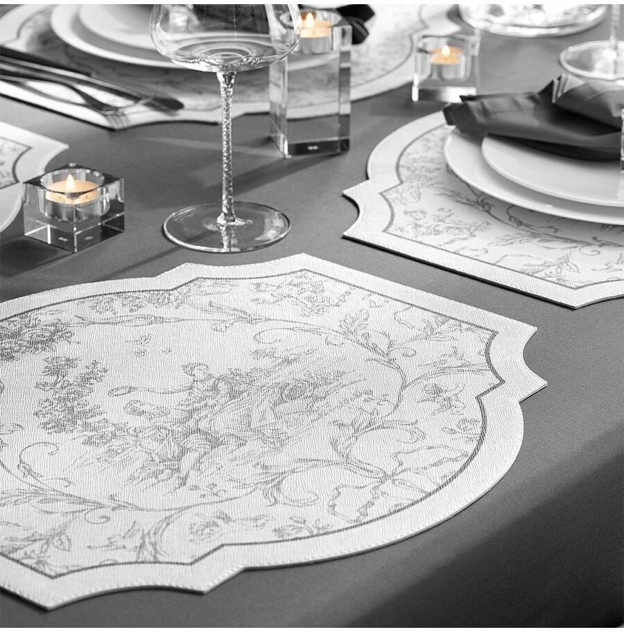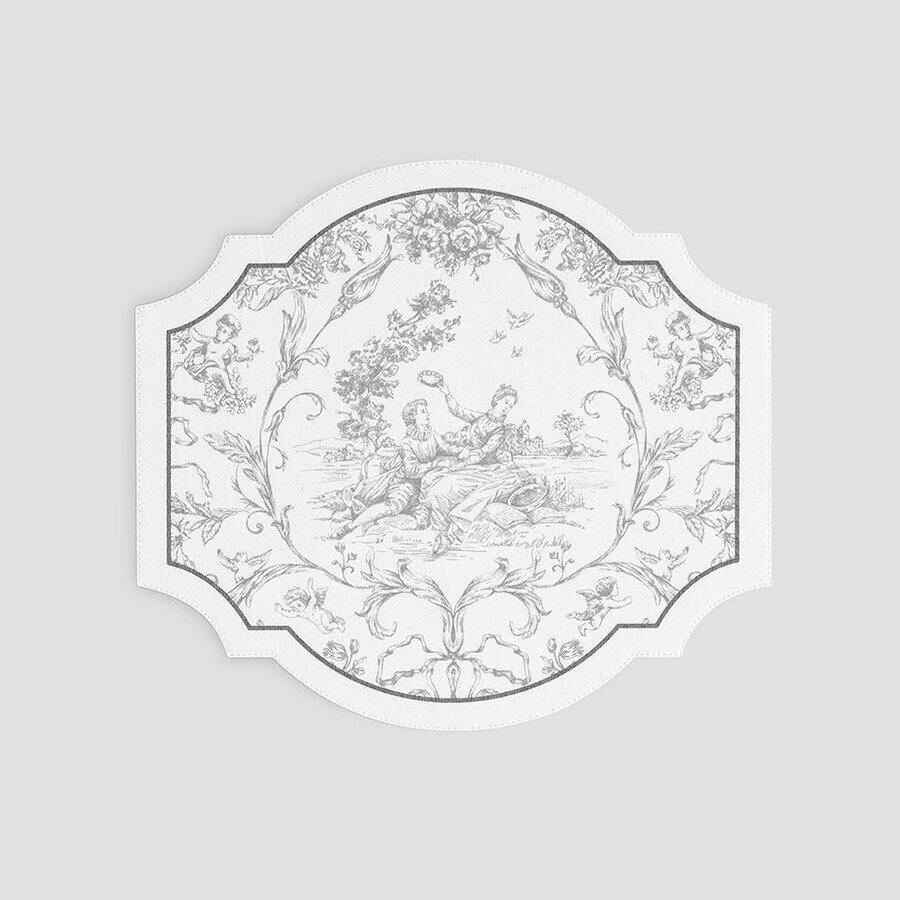 Эта фигурная подставка под горячее входит в классическую коллекцию «Мартинелли».Она изготовлена из прочного поливинилхлорида, который состоит из двух слоев. Первый слой – твердая основа, на которую наносится следующий слой, который создает структуру поверхности. Материал этой плотной подставки эластичен и очень прочен, не деформируется, устойчив к истиранию. Такие изделия не впитывают воду и легко очищаются.«Мартинелли» – это классика во французском стиле. Изящные фигурные края подставки дополняет знаменитый рисунок туаль-де-жуи в монохромном исполнении. Несколько таких подставок на столе вместе с фарфоровой посудой «Мартинелли» создадут на кухне характерную атмосферу французской провинции.