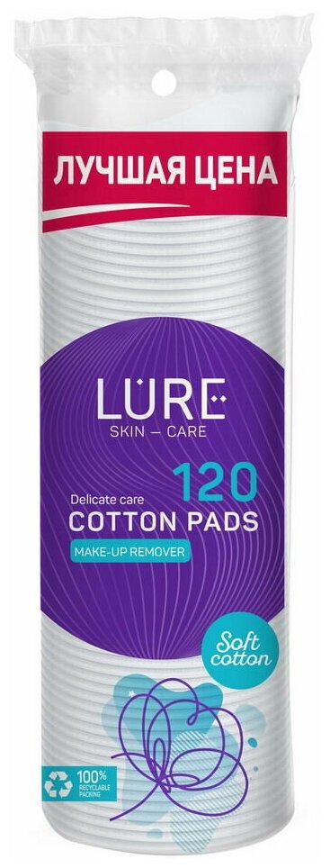 Ватные диски LURE производятся по особой технологии – «полировка водой», создавая при этом идеально гладкую поверхность. Благодаря гладкой поверхности диски впитывают, а не размазывают косметические средства. Диски не расслаиваются и не оставляют ворсинок.