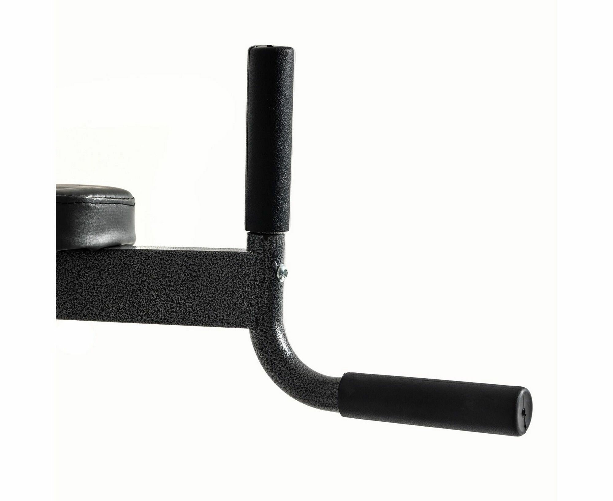 Достаточная длина каждой рукояти позволит подобрать ширину комфортного хвата. Брусья вынесены вперед, поэтому не создают дискомфорта в процессе выполнения тренировок. Подставки имеют уретановое покрытие, что создает дополнительные комфортные условия. Еще одна полезная опция - это возможность регулировки турника по высоте от 180 до 230 см.