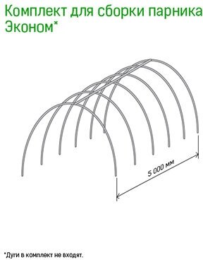 | Комплектация | Комплект для сборки парника: трубки металлические в ПВХ оболочке 1м — 5 шт, 2 тройника, 4 крестовины |