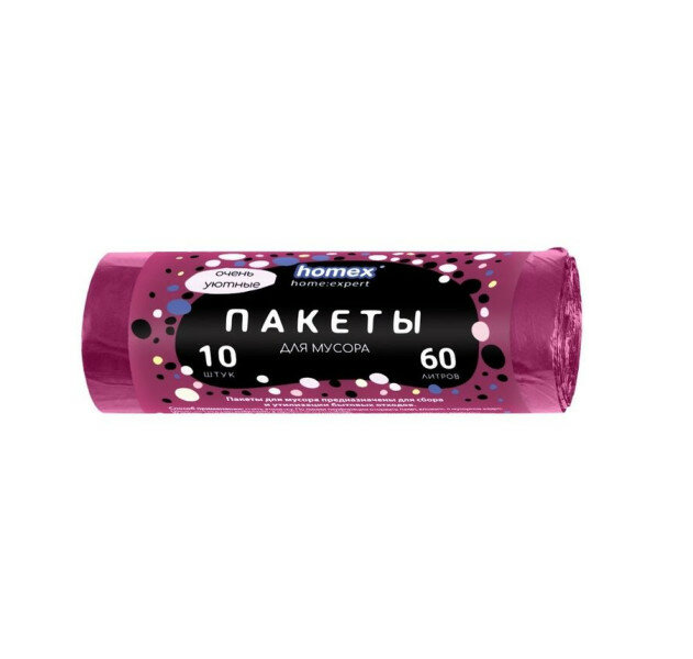 Мешки для мусора Homex 60 л бордовые 10 шт