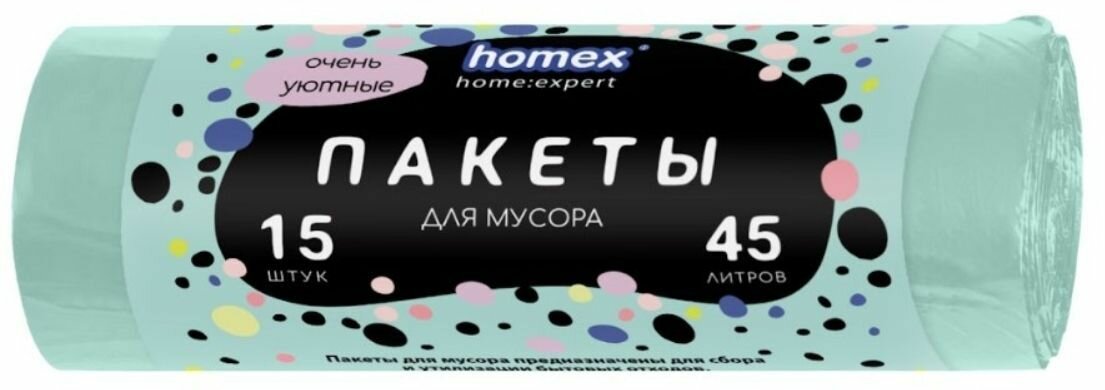 Мешки для мусора Homex Очень уютные 45 л бирюзовые 15 шт