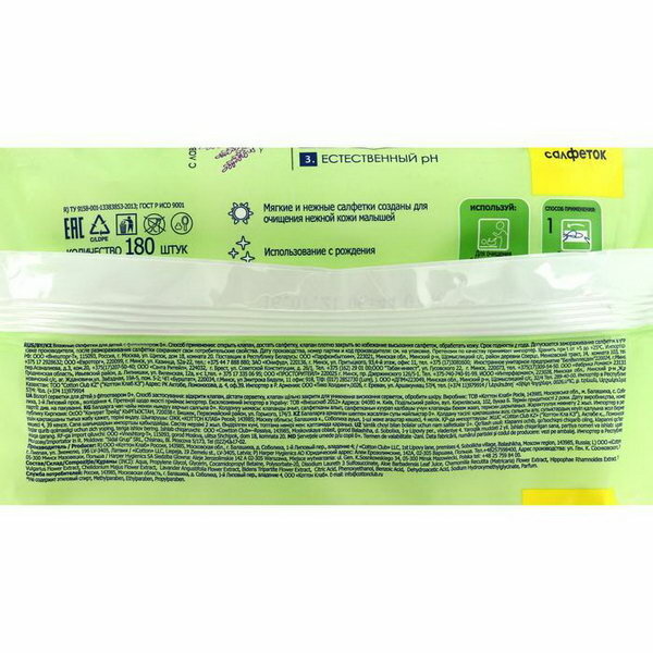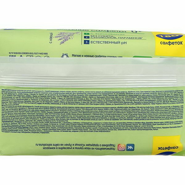 Мягкие и нежные салфетки созданы для очищения нежной кожи малышей, прекрасно очищают и освежают кожу. Подходят для использования с рождения. Природные компоненты, входящие в состав экстракта липы, способствуют увлажнению и успокаивают кожу. Салфетки удобны в применении и незаменимы для ежедневного ухода за кожей ребенка.Отлично увлажняют и успокаивают кожуНе содержат парабены, силиконы и SLS, обеспечивая безопасный уходМягкие поверхностно-активные вещества эффективно удаляют грязь
