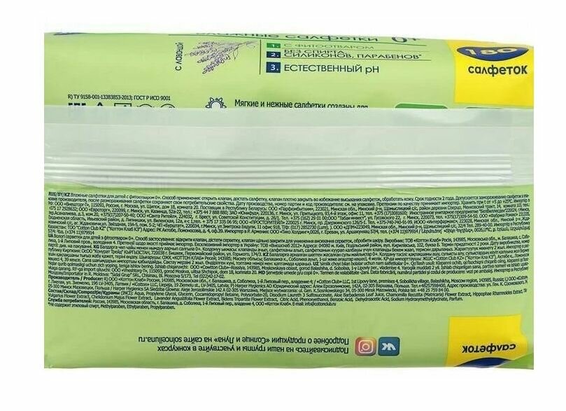 | Состав | нетканое полотно, Aqua, Propylene Glycol, Glycerin, Cocamidopropyl Betaine, Polysorbate-20, Disodium Laureth 3 Sul-fosuccinate, Aloe Barbadensis Leaf Juice, Chamomilla Recutita (Matricaria) Flower Extract, Hippophae Rhamnoides Extract, Tilia Vulgarius Flower Extract, Chelidonium Majus Flower Extract, Lavander An-gustifolia Flower Extract, Bidens Tripartite Flower Extract, Citric Acid, Phenoxyethanol, Benzoic Acid, Dehydroacetic Acid, Sodium Hydroxymethyl-glycinate, Parfum |