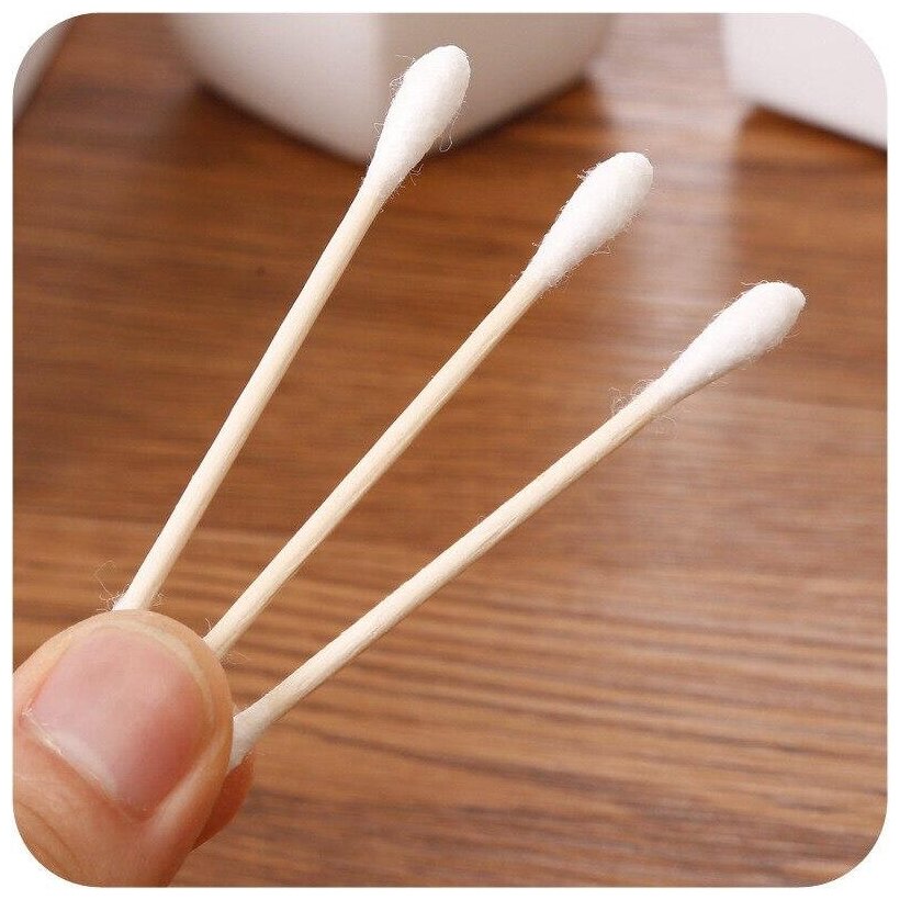 Ватная головка из смесового волокна органический хлопок бамбук. Упругий прочный стик не ломается. Для ежедневного использования в косметических и гигиенических целях.