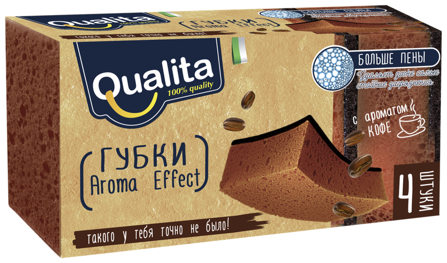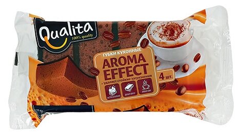 Губка Aroma Effect из крупнопористого поролона повышенной плотности надолго сохраняет форму. Благодаря структуре поролона губка быстро вспенивается, долго сохраняет форму. Приятный аромат кофе, интегрированный в структуру поролона, создает дополнительный комфорт при использовании. Подходит для хозяйственно-бытовых нужд, мытья посуды, раковин, кафеля и мебели в том числе. Размер: 97x65x39 мм