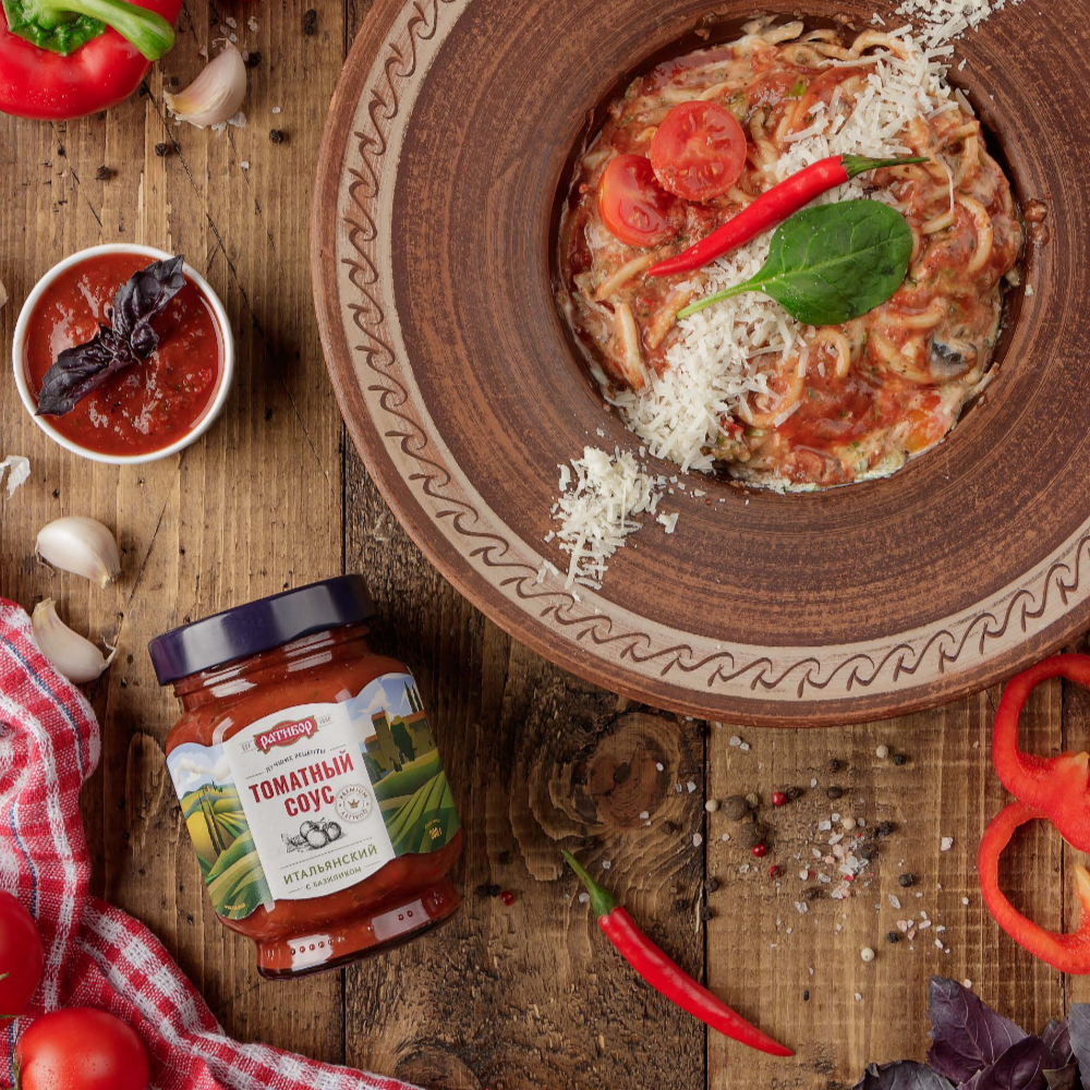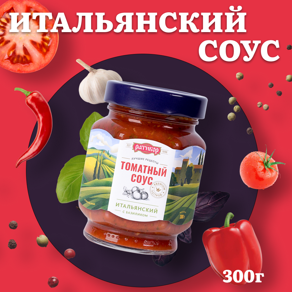 Итальянский соус "Ратибор" - отличное дополнение к вашему блюду. Свежие томаты , душистый базилик и орегано делают соус ароматным . Итальянский соус идеально подходит к пасте, приготовлению мясных , овощных блюд и , как соус для пиццы. Не содержит, красителей и консервантов. Готов к употреблению.