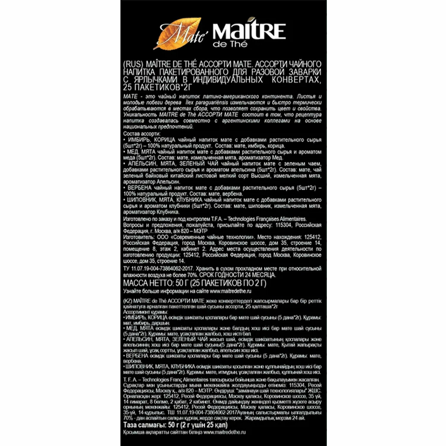 Чай Maitre Mate ассорти в пакетиках 2 г 25 шт Maitre de The