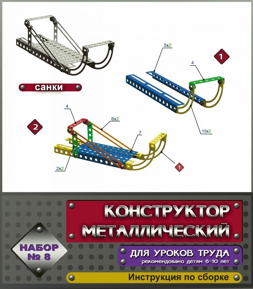 Конструктор металлический №8, для уроков труда - оригинальный комплект, который станет отличным дополнением к уроку труда. Благодаря высококачественному исполнению преподавателю не составит труда заинтересовать своих подопечных увлекательным миром конструирования, которое позволит им собрать разные модели. В процессе сборки ребята смогут развить мелкую моторику рук и пространственное мышление, а готовые модели станут поводом для гордости учеников.