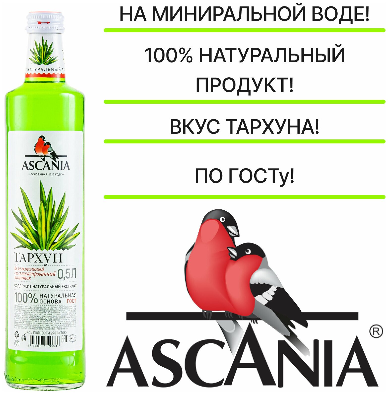 Газированный напиток Ascaniaтравы тархун 0.33 л стеклянная бутылка 6 шт.