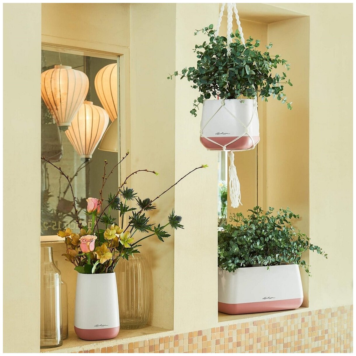Кашпо с автополивом Lechuza-ваза yula 14х14х21 см бело-розовое