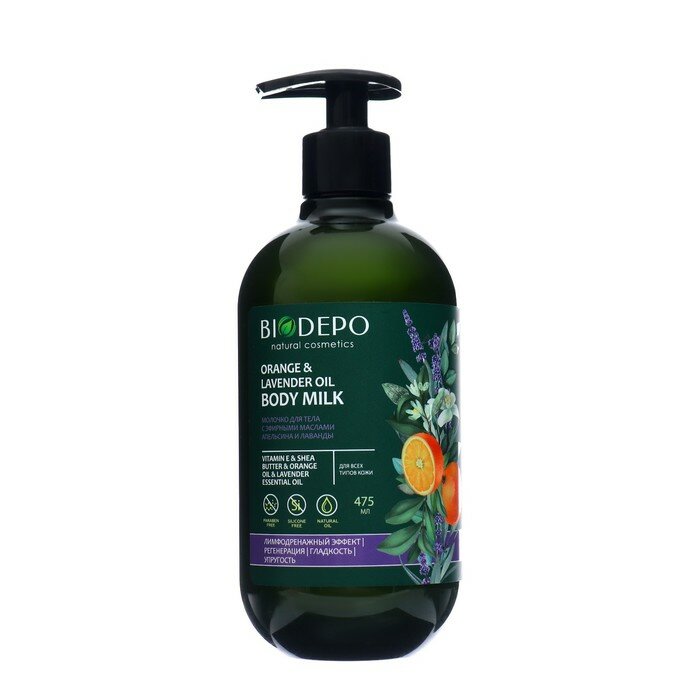 Молочко для тела Biodepo лимфодренажный эффект с маслами апельсина и лаванды 475 мл