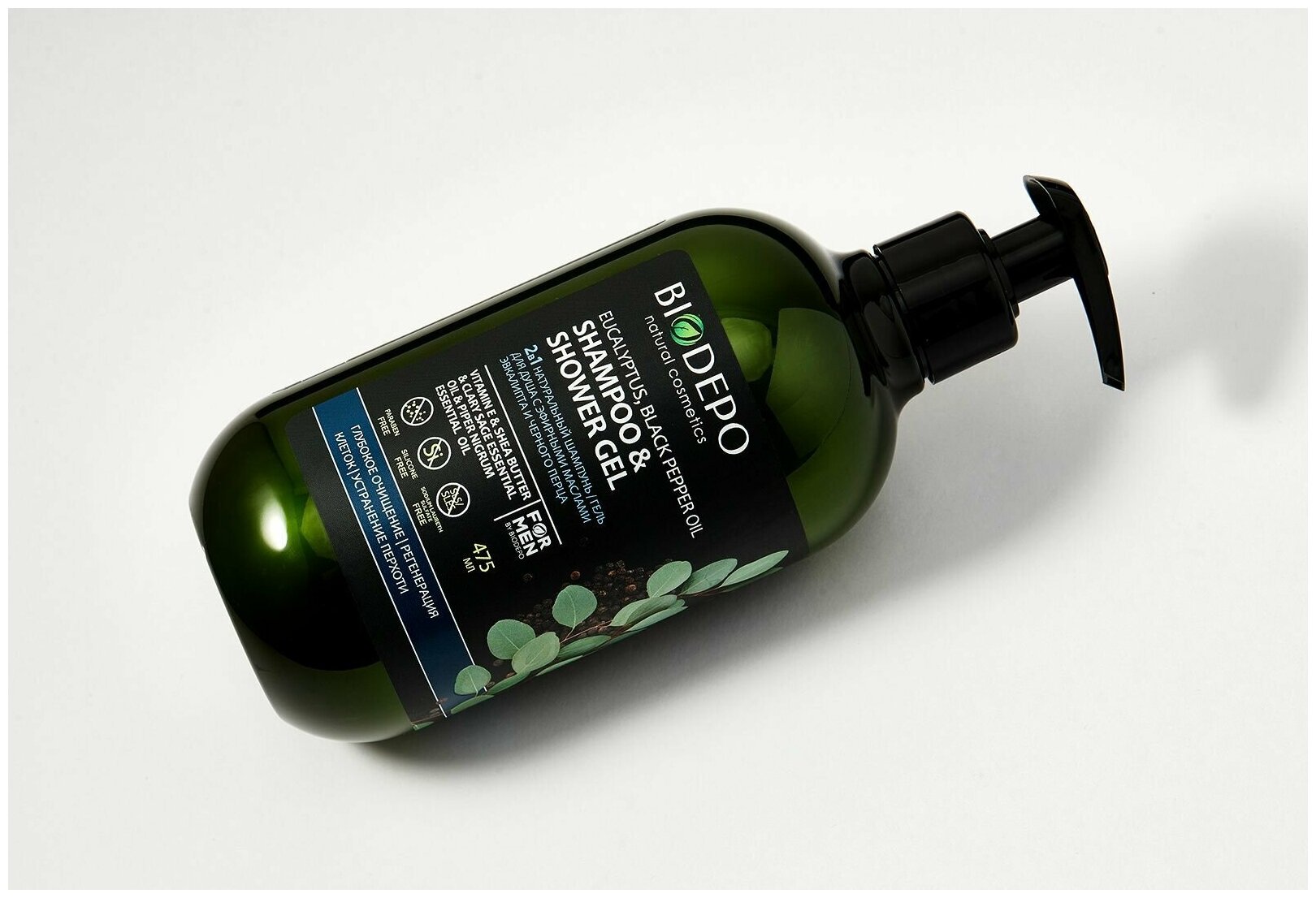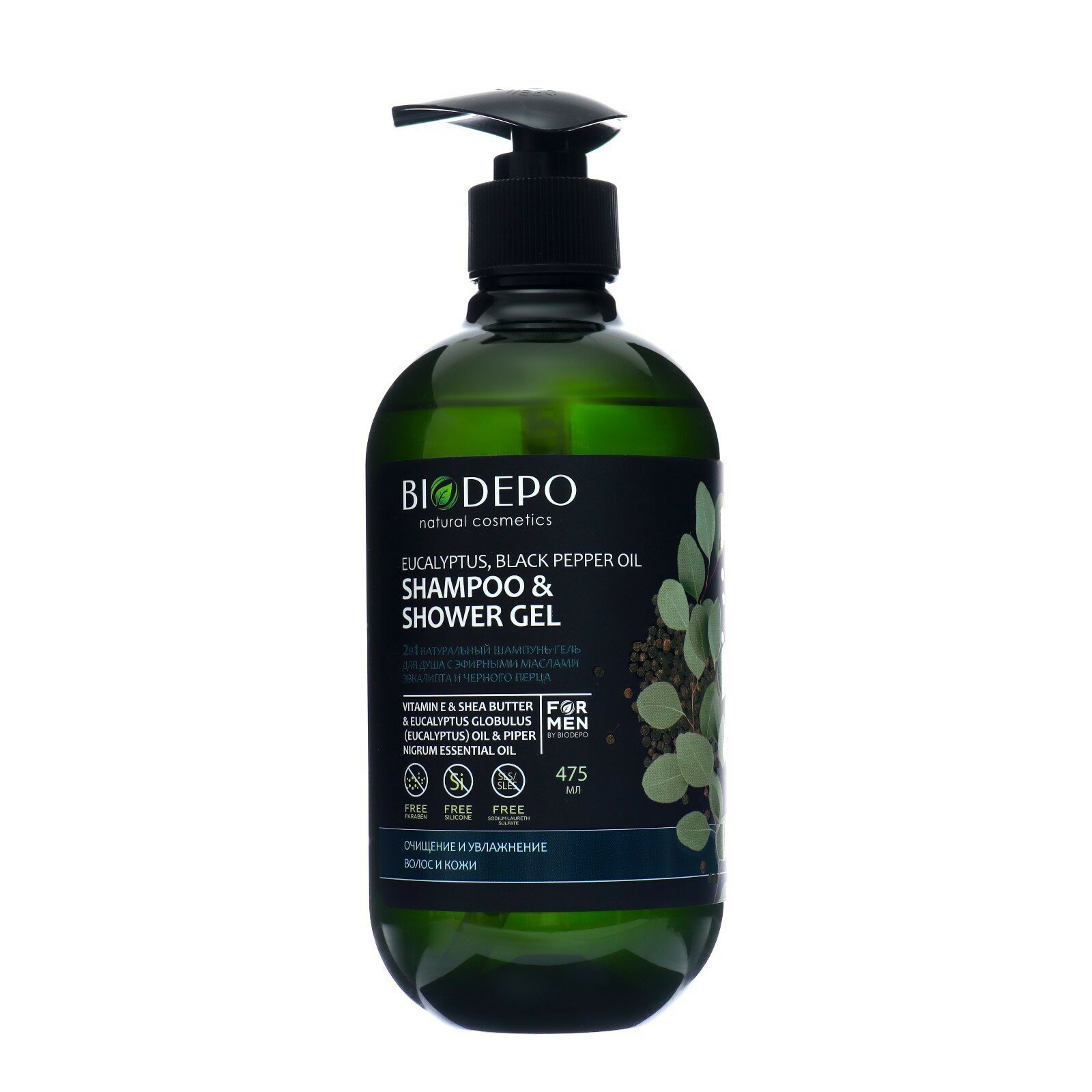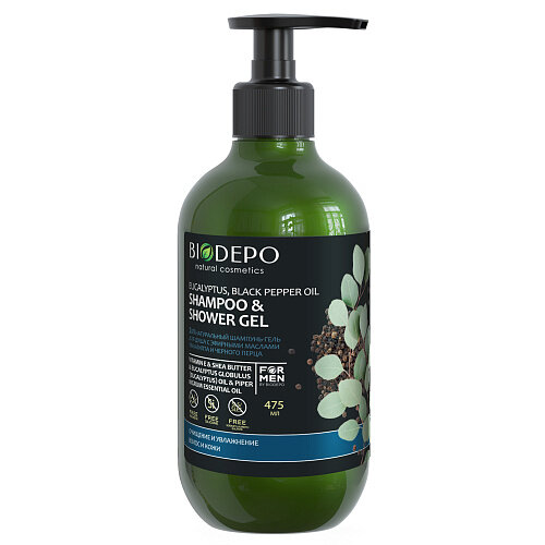 Гель-шампунь для душа Biodepo с эфирными маслами эвкалипта и черного перца 475 мл