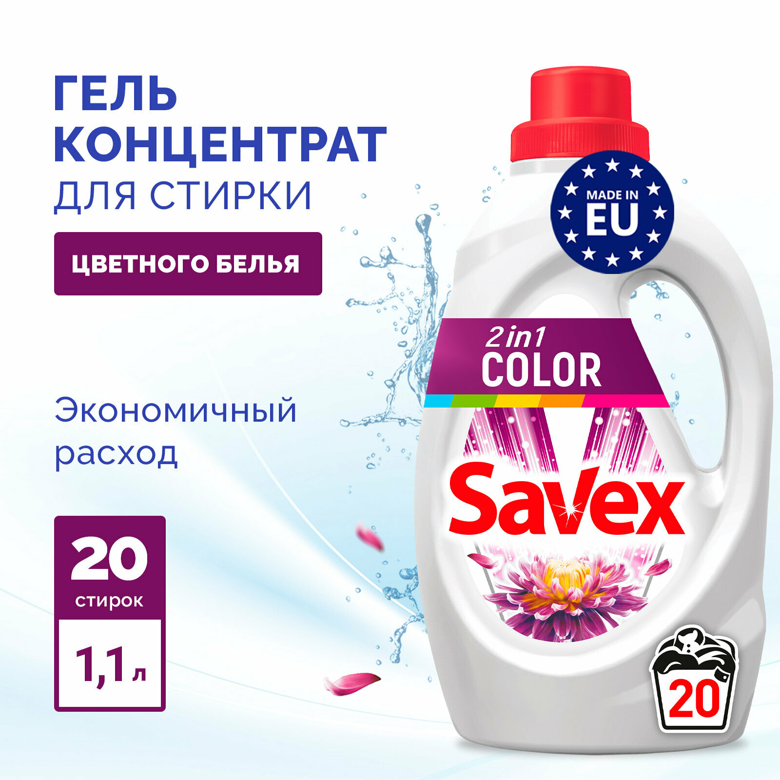 | Способ применения | Залейте гель в отсек для моющих средств, запустите программу стирки. Следуйте рекомендациям, указанным на ярлычках изделий. |