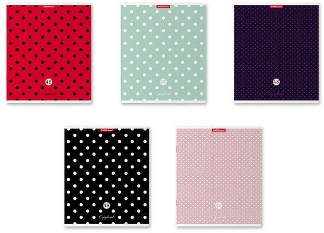9509005 Тетрадь 48л кл ErichKrause Dots, выборочный УФ-лак, (микс цветов, 1шт) Тетрадь общая формата А5+ (170х203 мм). Обложка из высококачественного мелованного картона плотностью 190 г/м2. Отделка - выборочный УФ-лак. В блоке 48 листов в клетку с полями. Бумага офсетная плотностью 60 г/м2. Цвет линовки - синий. Скругленные уголки обложки и блока. Тип скрепления - скоба. Тетради одного цвета упакованы в термоусадочную пленку по 5 штук. Товар поставляется в нескольких вариантах цвета без возможности выбора.