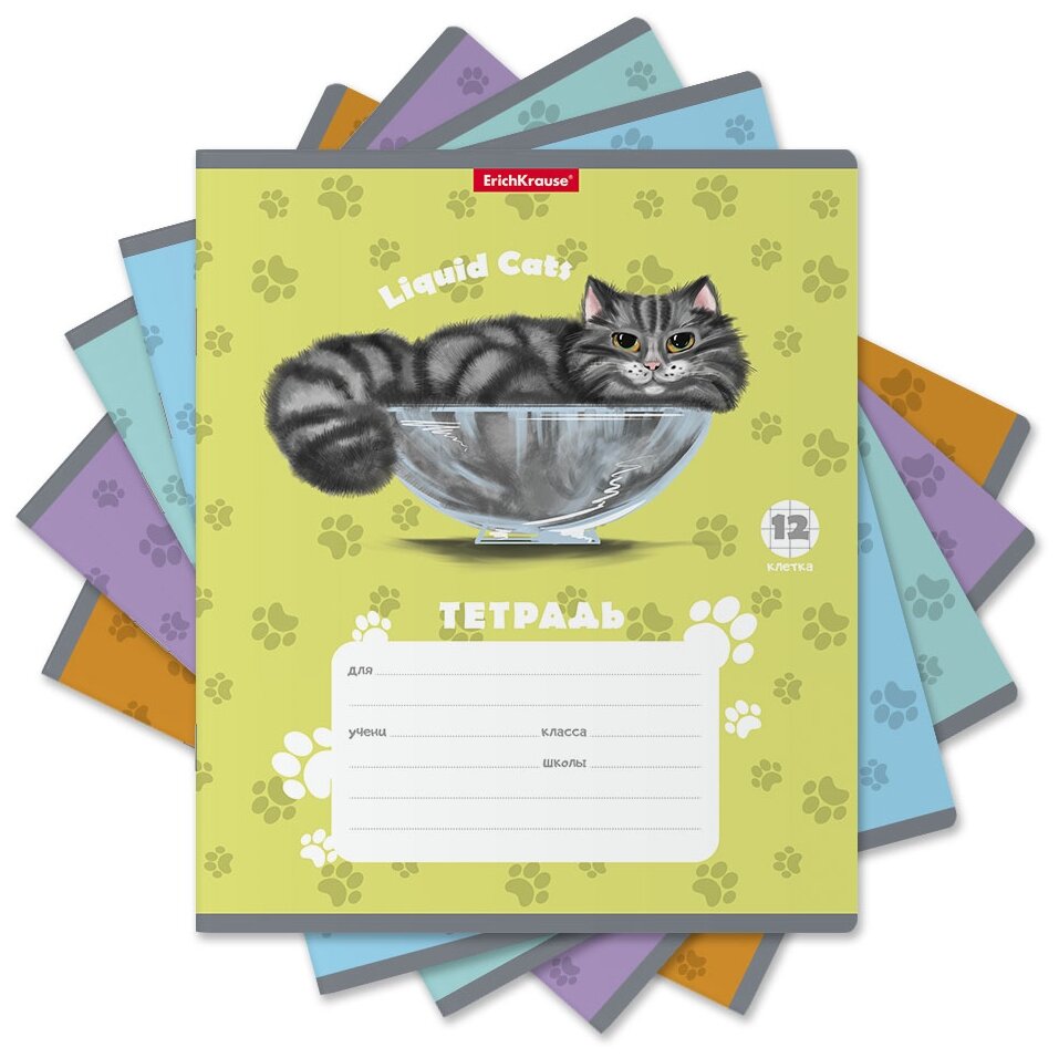 Тетрадь школьная ученическая Erich Krause Жидкие коты в клетку A5+ 12 листов в ассортименте