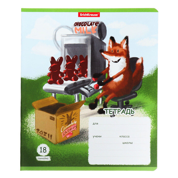 Тетрадь школьная ученическая Erich Krause Хитрый лис в линейку A5+ 18 листов в ассортименте