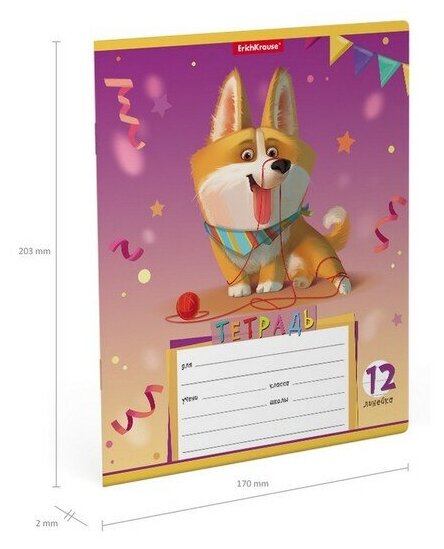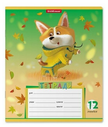 Тетрадь школьная ученическая Erich Krause Корги в линейку A5+ 12 листов в ассортименте