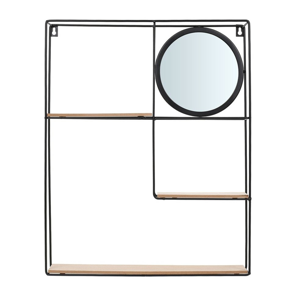 Размер 50*40*10 см, подвесная полка-зеркало, максимальная нагрузка 2 кгПодвесные(настенные) полки – это выгодное и удачное решение для организации неиспользуемого пространства под хранение и размещение различных вещей. Эргономичные и компактные конструкции могут стать настоящей «изюминкой» интерьера. Они подходят для использования буквально в любой комнате дома. Более того, такие конструкции позволяют ещё и выгодно сэкономить на покупке шкафа, стеллажа, поскольку могут их заменить.сталь, МДФ , стекло