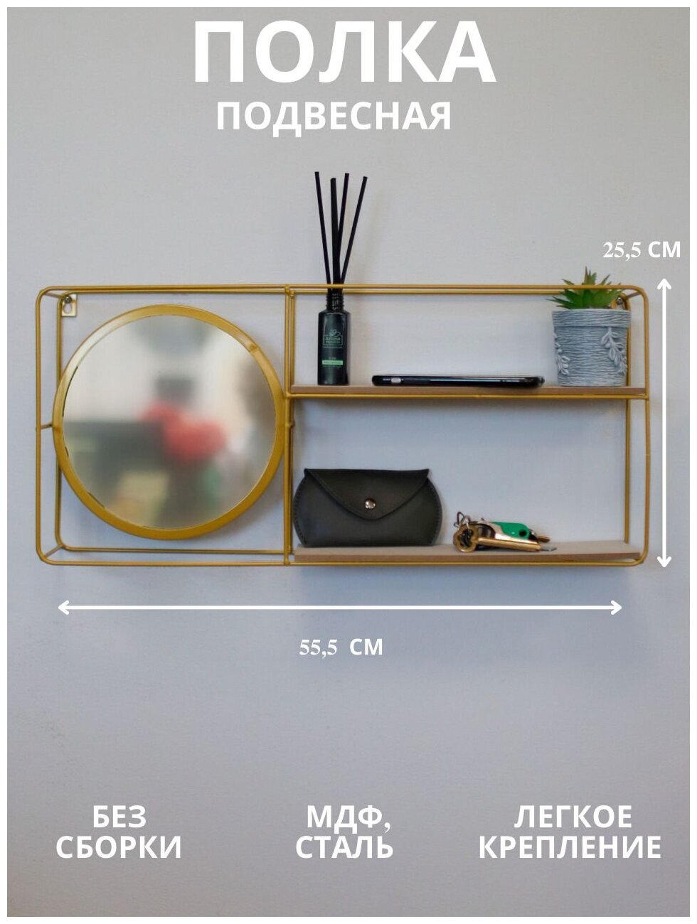На сегодняшний день товар «Подвесная полка-зеркало "Прямоугольник" декор золото 555*9*255 см "QWERTY" 73864» можно купить с кешбеком в 1 магазине: Яндекс.Маркет