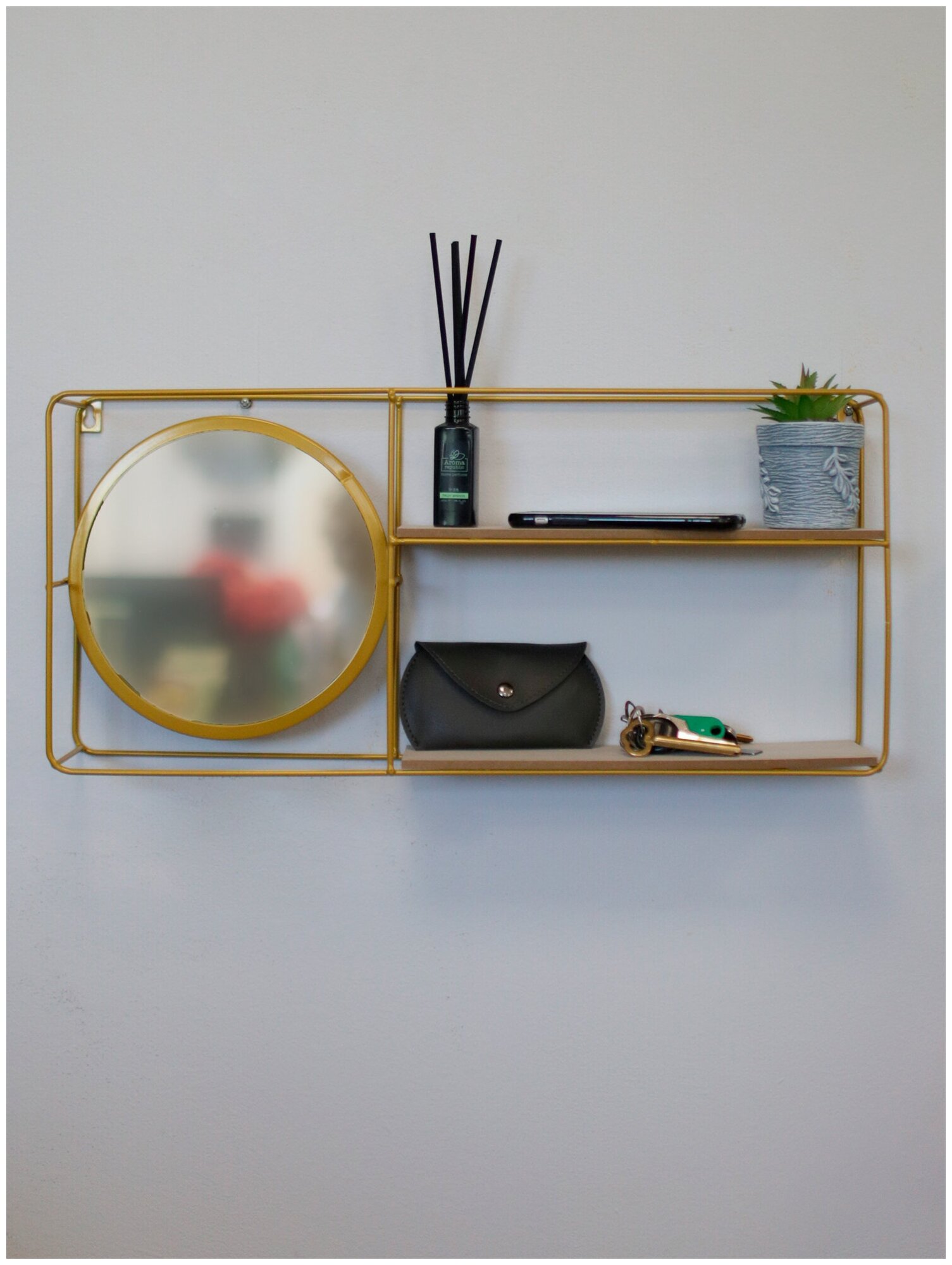 Подвесная полка-зеркало "Прямоугольник" декор золото 555*9*255 см "QWERTY" 73864