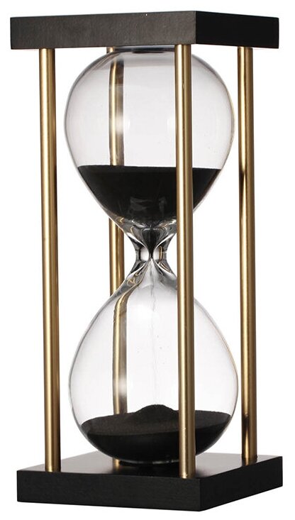 Необычные песочные 15-минутные часы с черным песком демонстрируют смелый выбор хозяина и подтверждают силу духа обрамлением алюминиевой подставкой в черной и золотой цветовой гамме. Элегантный современный вид выделяет эти часы в Вашем интерьере.