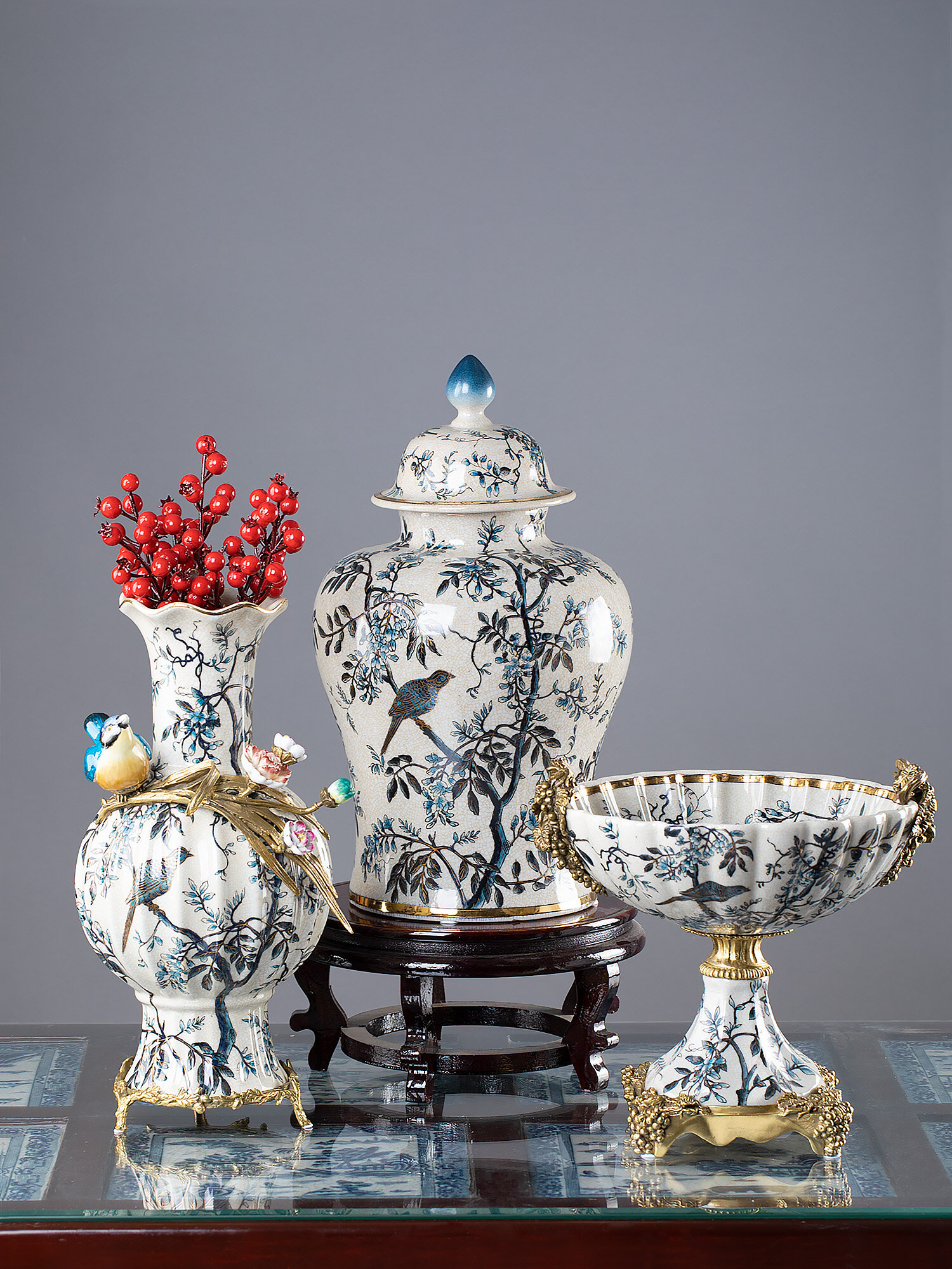 Уникальное изделие ручной работы. При производстве этих художественных изделий из фарфора с бронзой используются вековые традиции китайских мастеров. Видимые трещинки (кракелюры) делаются по уникальной технологии, что придает более благородный вид старинного изделия.