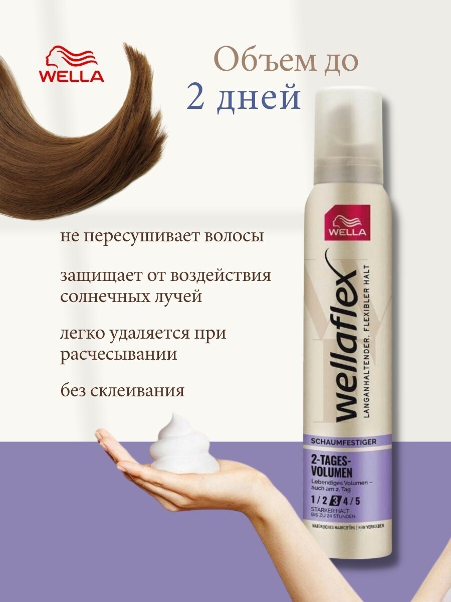 Мусс для волос Wella wellaflex сильной фиксации двухдневный объем 200мл