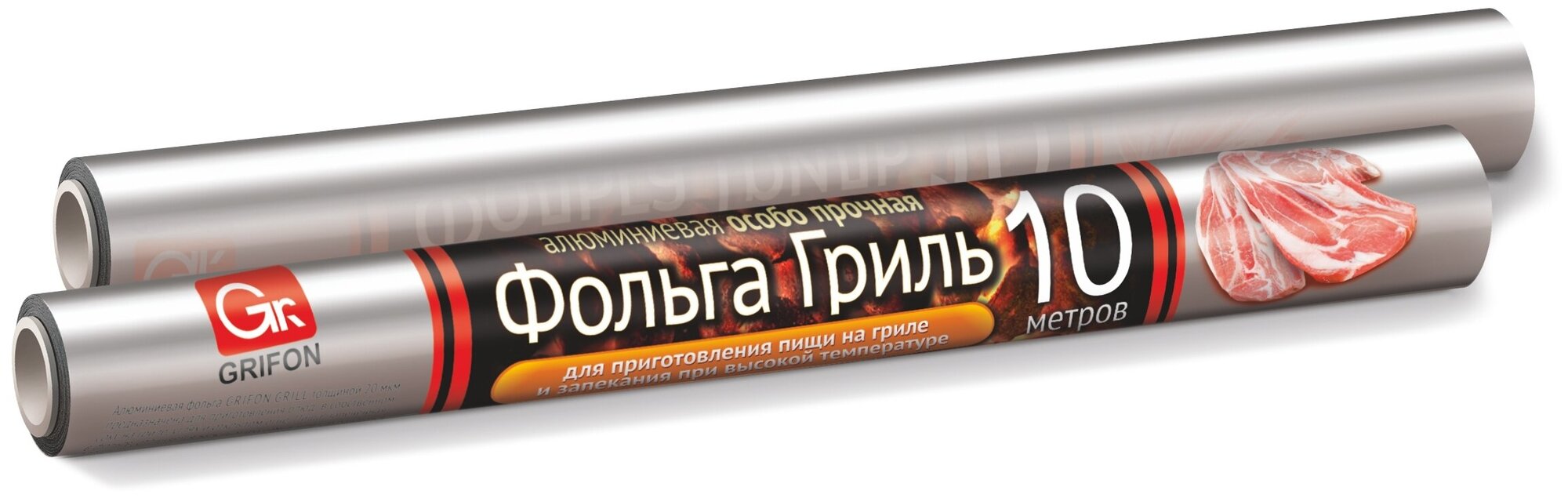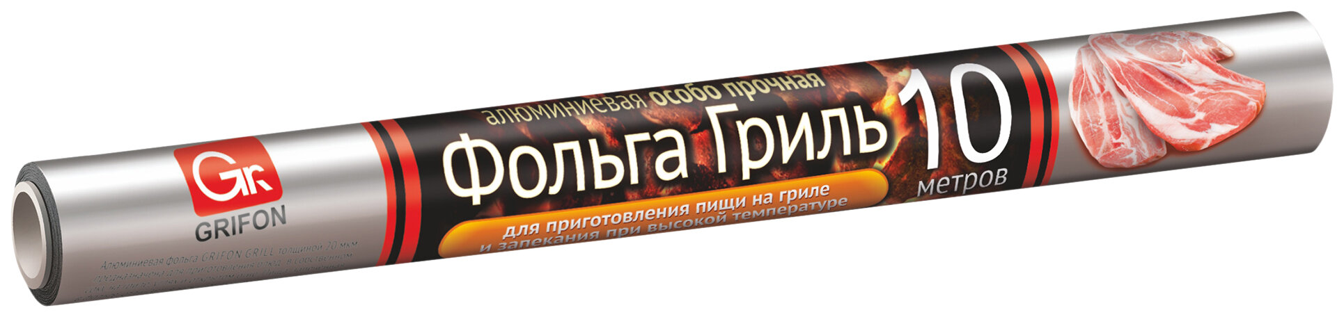 Пищевая алюминиевая фольга GRIFON Гриль толщиной 20 мкм обладает повышенной термостойкостью, Предназначена для приготовления пищи в собственном соку на открытом огне, на гриле.