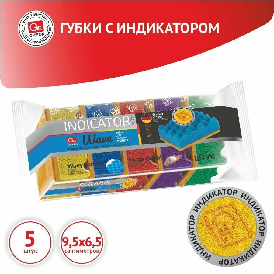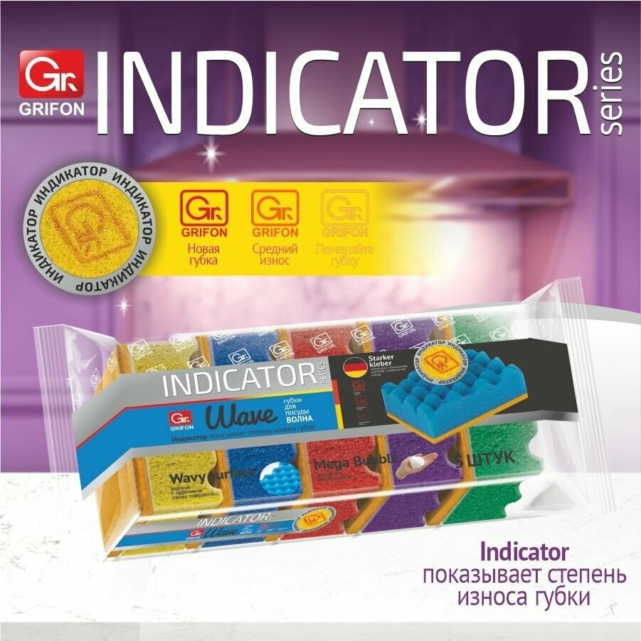 Прямоугольные губки двухслойные: цветной поролон 18 кг/м³, желтый абразив 500 г/м², волнистая поверхность поролона. Компания GRIFON представляет коллекцию губок с индикатором износа, который находится на абразивном слое. Желтый абразив и красный индикатор - вот отличительные особенности губок INDICATOR. Традиционно считается, что максимальный срок службы обычной губки для мытья посуды 4-6 дней. Конечно, степень износа зависит от многих факторов: частоты использования, количества моющих средств, температуры воды, с помощью которой вы моете посуду. По мере использования индикатор будет исчезать, сигнализирую о том, что пора поменять губку. Это удобно, гигиенично и эффективно!
