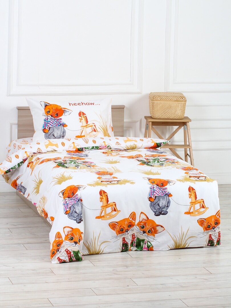 Комплект детского постельного белья с рисунком милых лисят, выполнен из импортного поплина,100% хлопок.