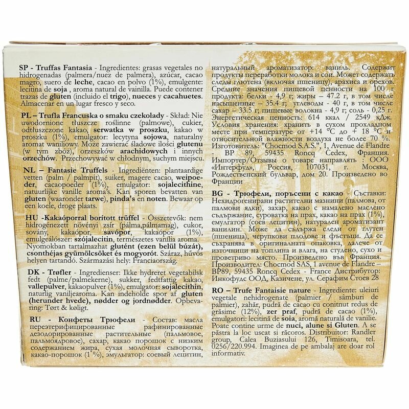 Chocmod Fantaisie Nature - классические темные трюфели от известной французской компании Chocmod. Компания существует с 1948 года и является лидером во Франции в производстве трюфелей.