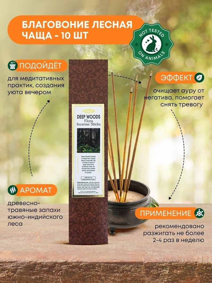 На сегодняшний день товар «Благовоние Лесная чаща (Deep wood incense sticks) Synaa | Синая 10шт Aasha Herbals» можно купить с кешбеком в 1 магазине: Яндекс.Маркет