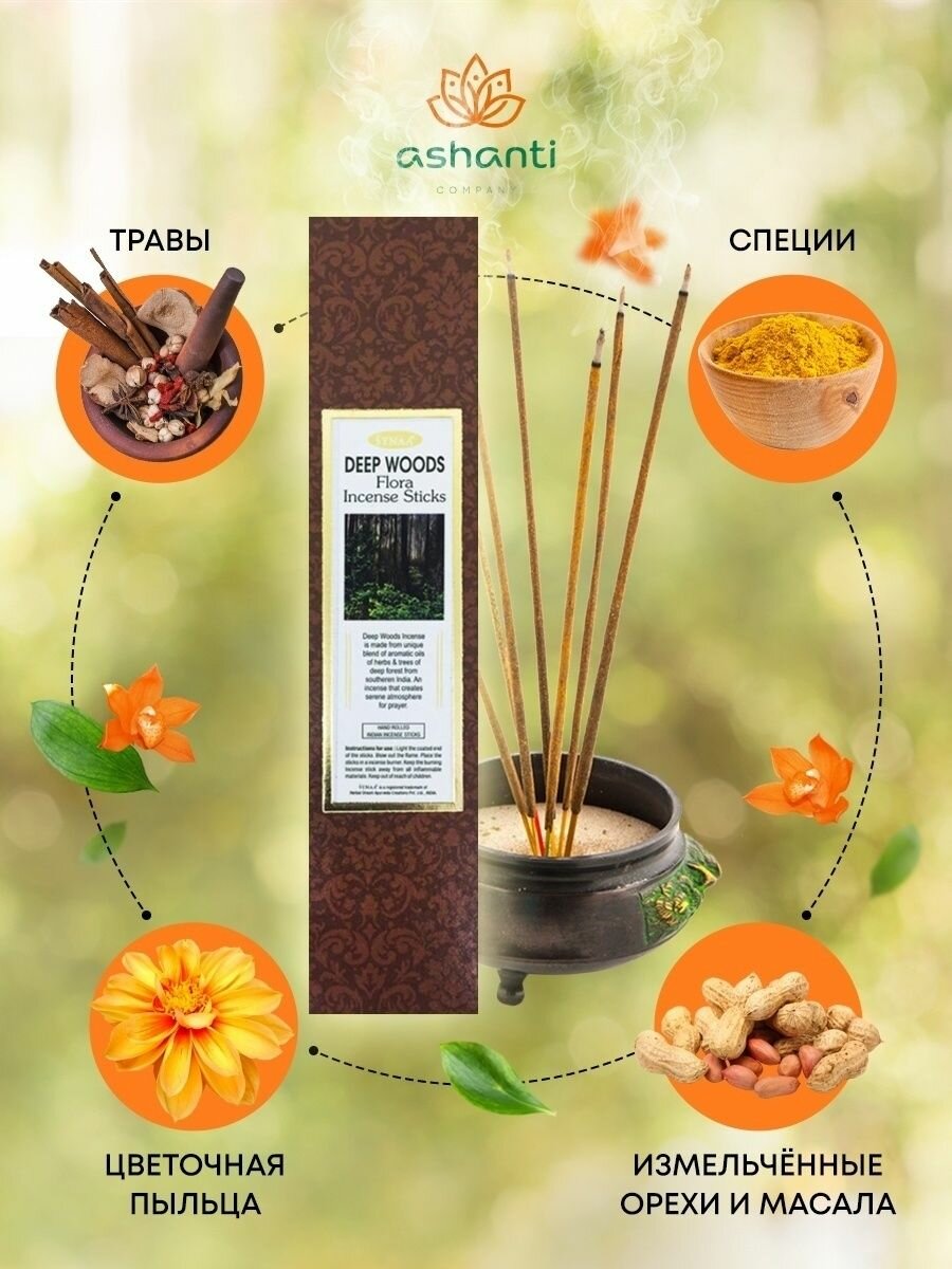 Благовоние Лесная чаща (Deep wood incense sticks) Synaa | Синая 10шт Aasha Herbals