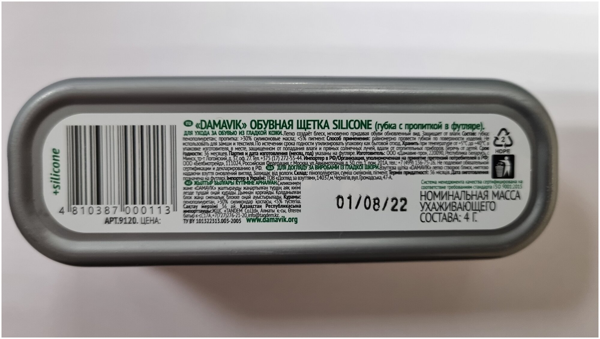 | Способ применения | Равномерно провести губкой по поверхности изделия. Не использовать для замши и текстиля. |