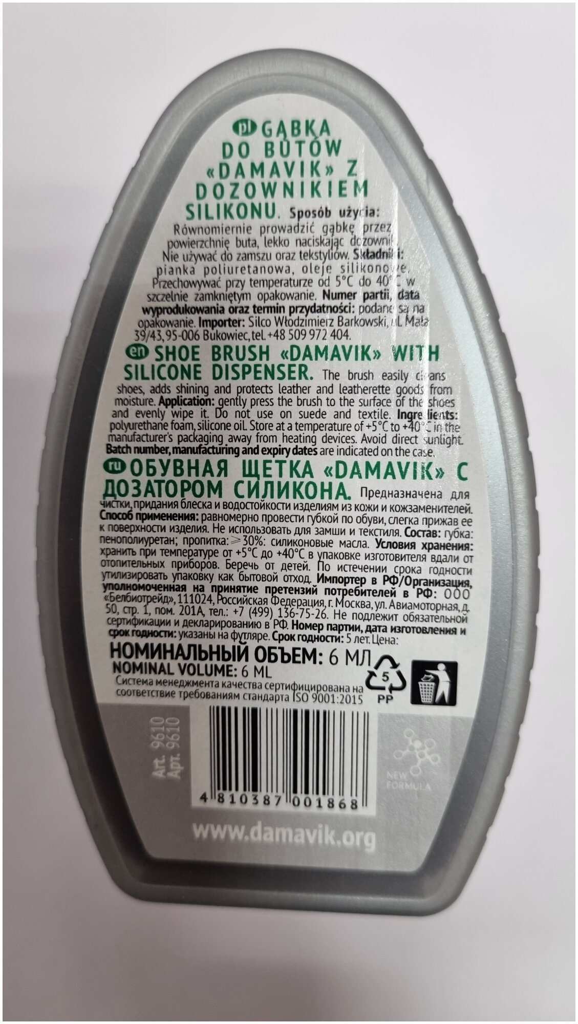 На сегодняшний день товар «Щетка для обуви Damavik Silicone с дозатором силикона для ухода за изделиями из гладкой кожи бесцветная» можно купить с кешбеком в 1 магазине: Яндекс.Маркет